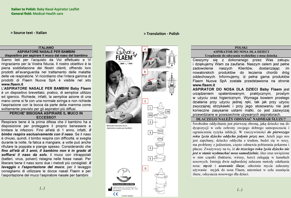 Tłumaczenie ulotki aspiratora do nosa dla dzieci BABY FLAEM (IT > PL) |