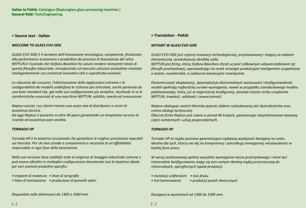 Tłumaczenie ofert INDUCON (PL > IT) |
