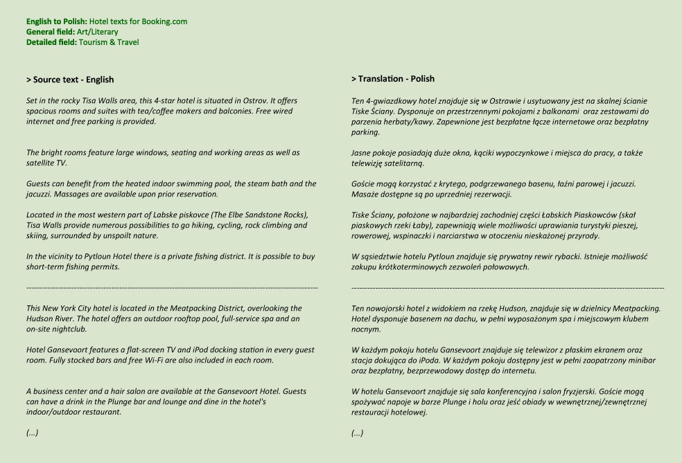 Opisy i prezentacje hoteli dla Booking.com (EN >PL) |