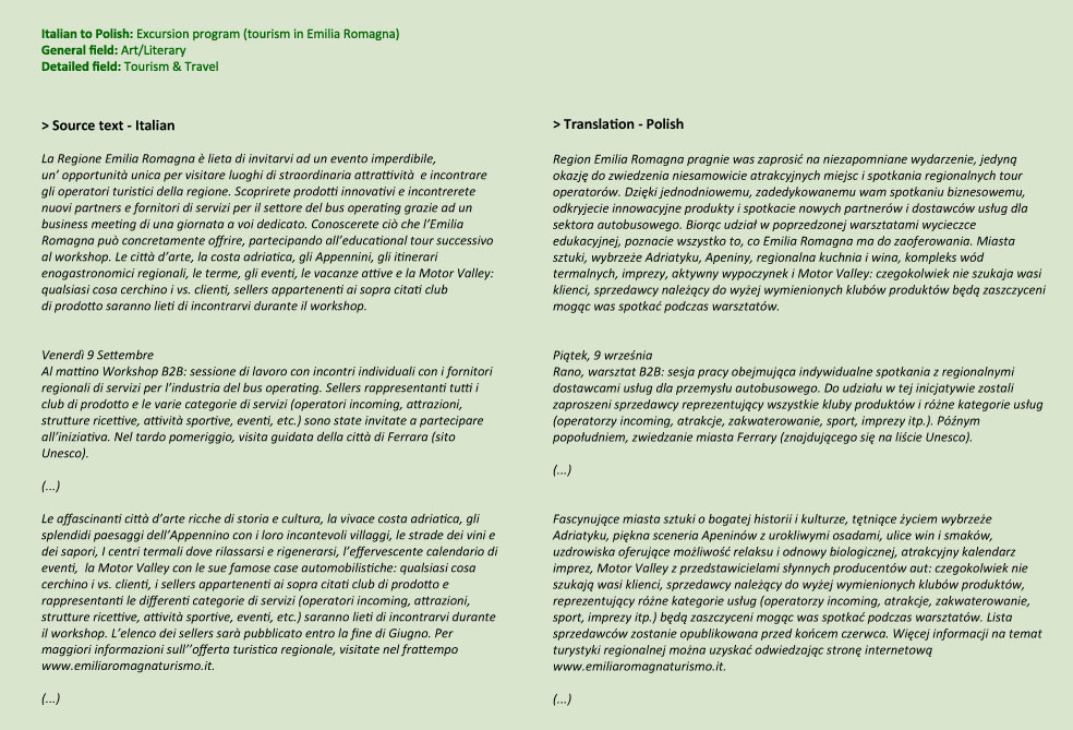 Program wycieczki: Turystyka regionu Emilia Romagna (IT > PL) |