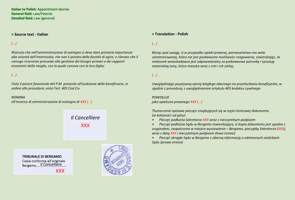 Dekret powołujący opiekuna prawnego (IT > PL) |