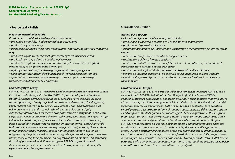 Dokumentacja podatkowa FERROLI SpA (PL > IT) |